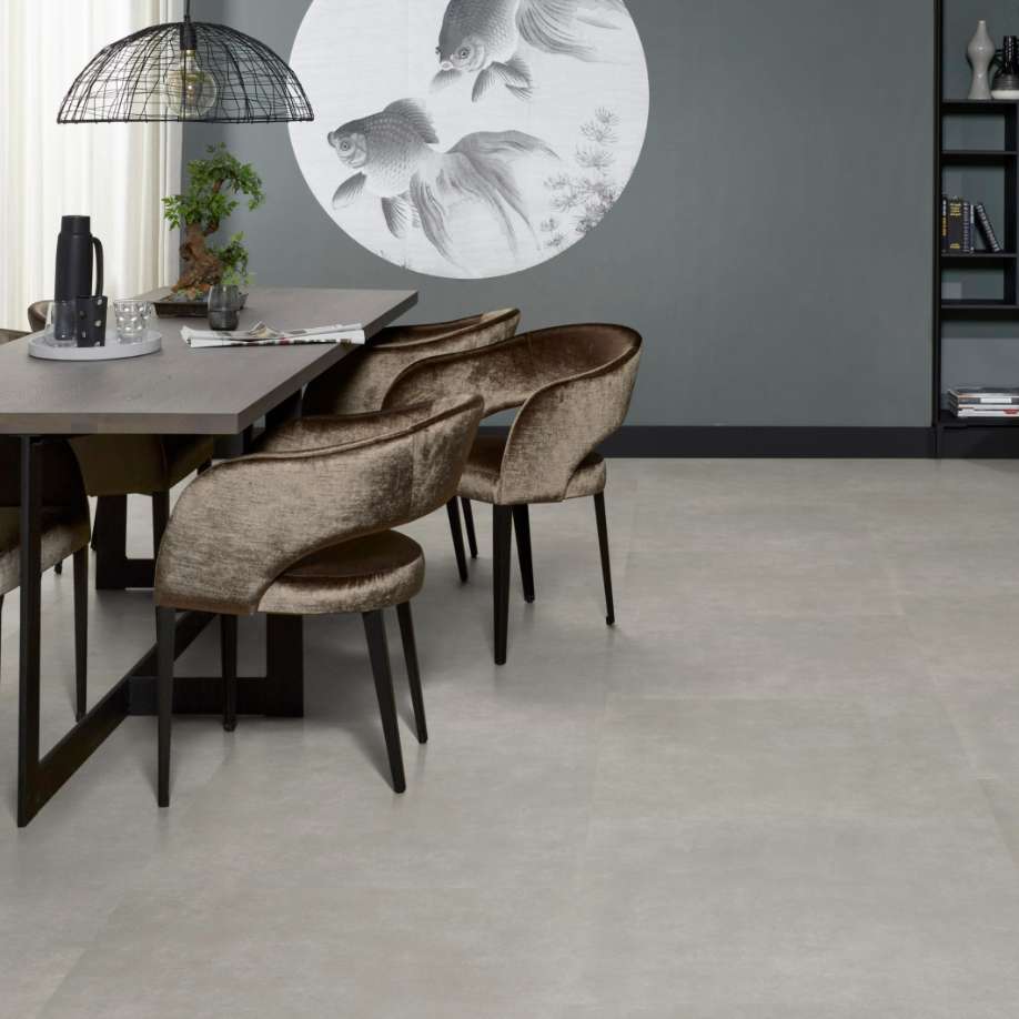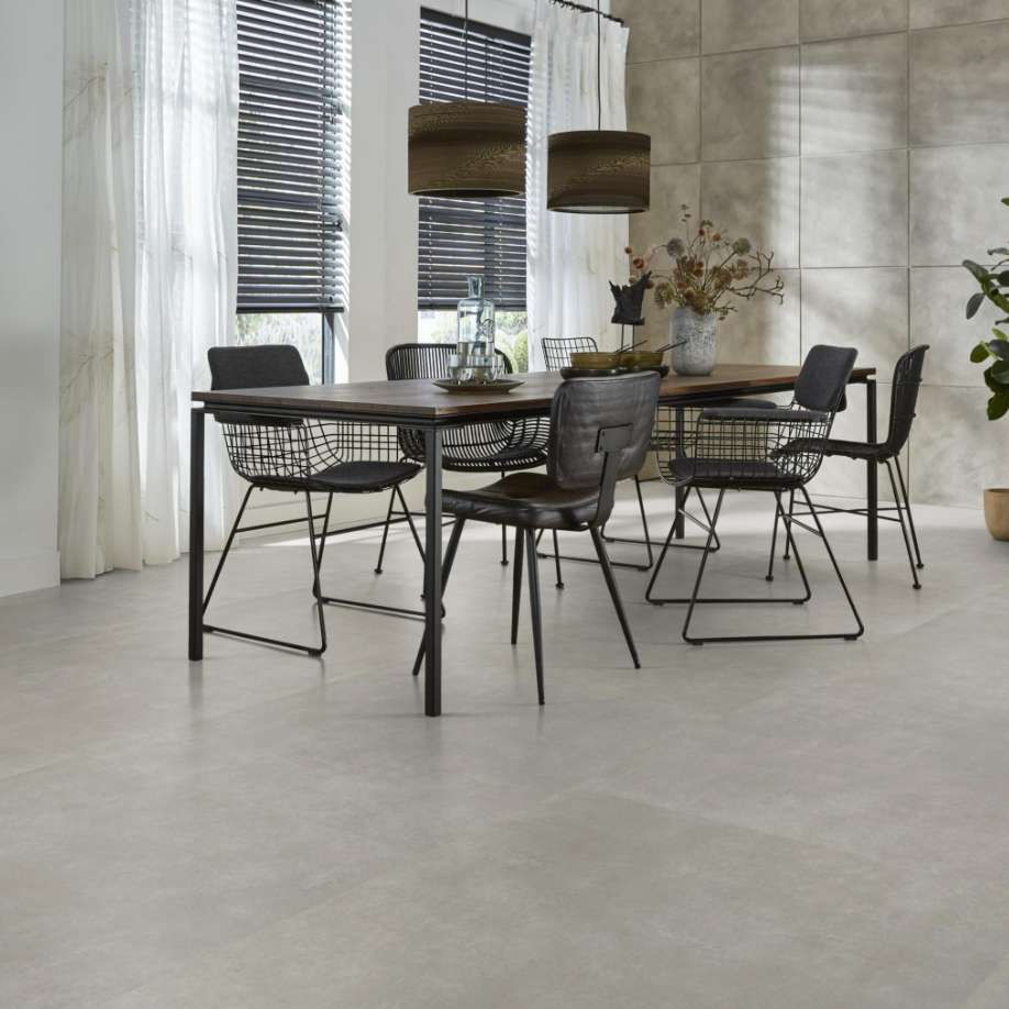 De Basic XL Dryback Light Grey PVC-vloer biedt een moderne lichtgrijze tegeluitstraling in een royaal formaat. Deze duurzame, ftalaatvrije vloer is onderhoudsvriendelijk en perfect voor vloerverwarming, ideaal voor strakke interieurs.