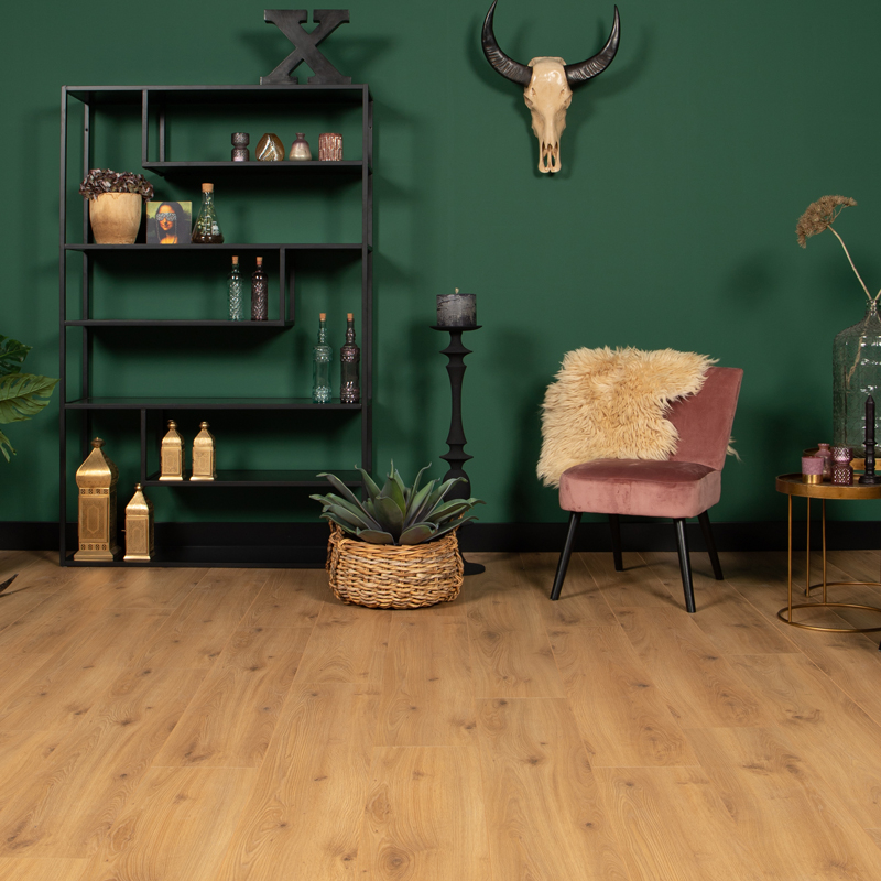 De Douwes Dekker Brede plank Peterselie - 24,3 cm, 2V is de ideale vloer voor wie op zoek is naar een unieke combinatie van stijl en comfort. Deze laminaatvloer heeft extra brede planken van 24,3 cm, wat zorgt voor een ruimtelijk en luxueus effect in elke ruimte. De natuurgetrouwe, matte houtstructuur geeft een rustige en authentieke uitstraling, perfect voor zowel moderne als klassieke interieurs. De V-groef aan twee zijden benadrukt de overgang tussen de planken, waardoor de vloer een natuurlijke en verfijnde uitstraling krijgt. De planken zijn 8 mm dik en afkomstig uit de Sympathiek-collectie, die bekend staat om zijn trendy decors en veelzijdigheid. De vloer is niet alleen mooi, maar ook praktisch: dankzij de Safe Lock-verbinding is de Douwes Dekker Brede plank Peterselie eenvoudig zwevend te leggen, en met een PEFC 70%-certificering draagt u bij aan een duurzame toekomst. De vloer is bovendien zeer onderhoudsvriendelijk en wordt geleverd met een huishoudelijke garantie van 20 jaar, zodat u jarenlang kunt genieten van een vloer die er altijd stijlvol uitziet. Met de Douwes Dekker Brede plank Peterselie brengt u een hoogwaardige en unieke vloer in huis die geschikt is voor dagelijks gebruik en elk interieur naar een hoger niveau tilt.